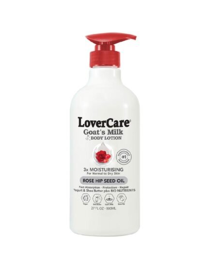 Lovercare’s main ingredients are Goat’s Milk, Shea butter, Yogurt, and Rosehip seed oil. Our bottles and labels design has 4 main ingredients on it.